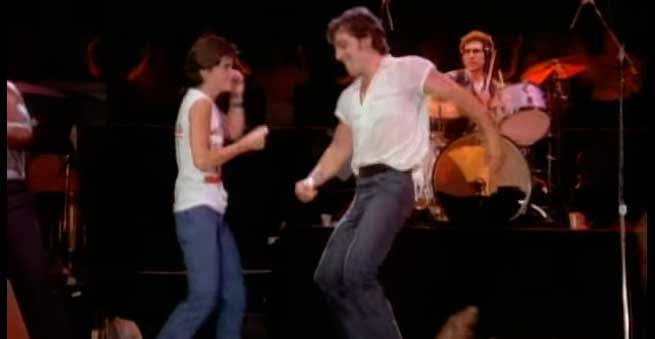 Bruce Springsteen Young Dancing In The Dark , In It, The Boss Springsteen Performs His Hit Dancing In The Dark To A Large And Enthusiastic Audience, And Among The People There, Right Close To Him, Is The Future Star Courteney Cox, Who Has The Chance.