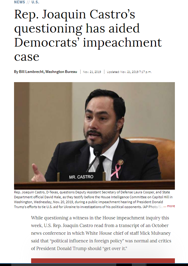 Joaquin Castro Impeachment , Congressman Joaquin Castro, Washington D.